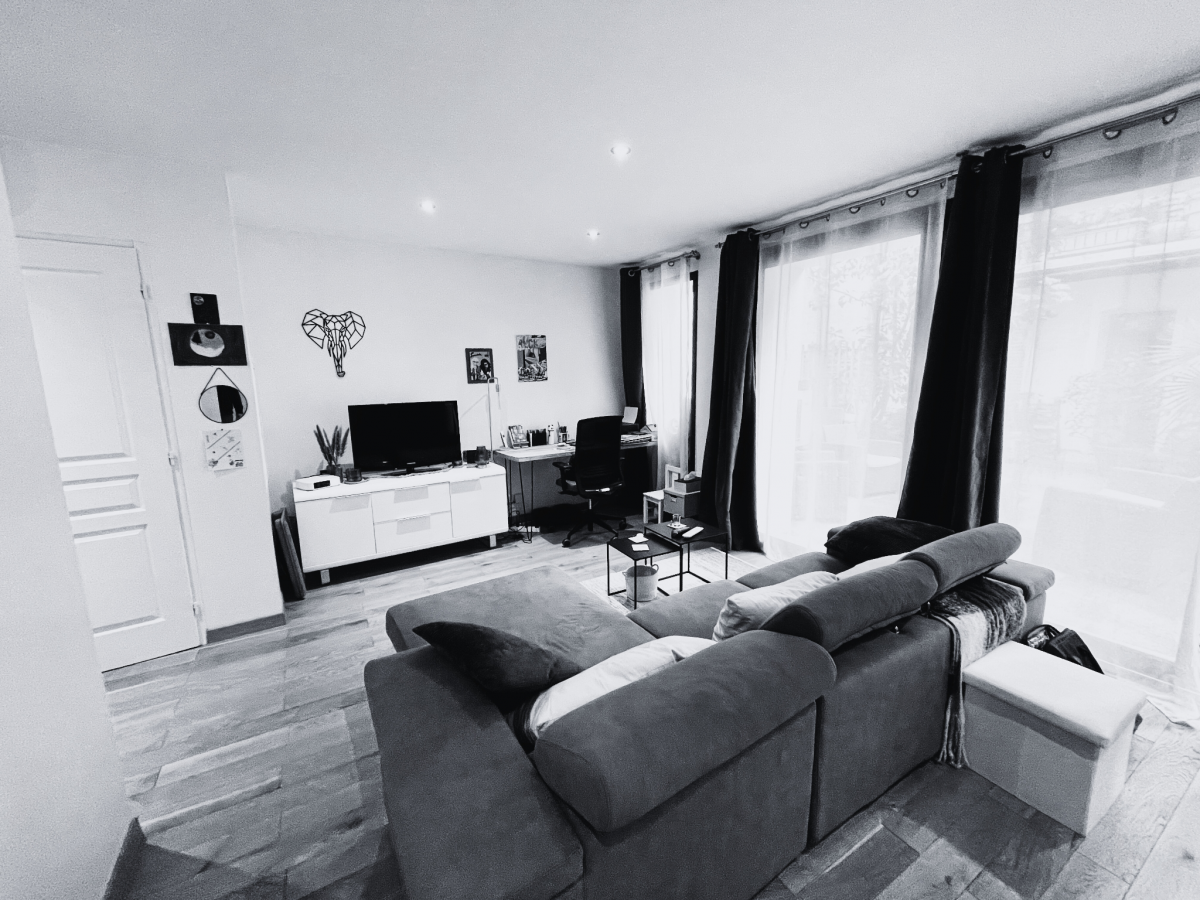 Une belle pièce de vie avec ses grandes baies vitrées triple vitrage donnant sur une agréable terrasse privative de 13 m²